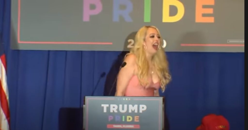 Lanzando un ataque contra los activistas LGBT+ que se oponen a su padre, Tiffany Trump dijo: "La gente que desafortunadamente ves en los medios sociales, ves estas mentiras inventadas... me entristece, tengo amigos míos y ellos se acercan, inventan historias [y preguntan], '¿Cómo pudiste apoyar a tu padre? Sabemos que tus mejores amigos son gays'.