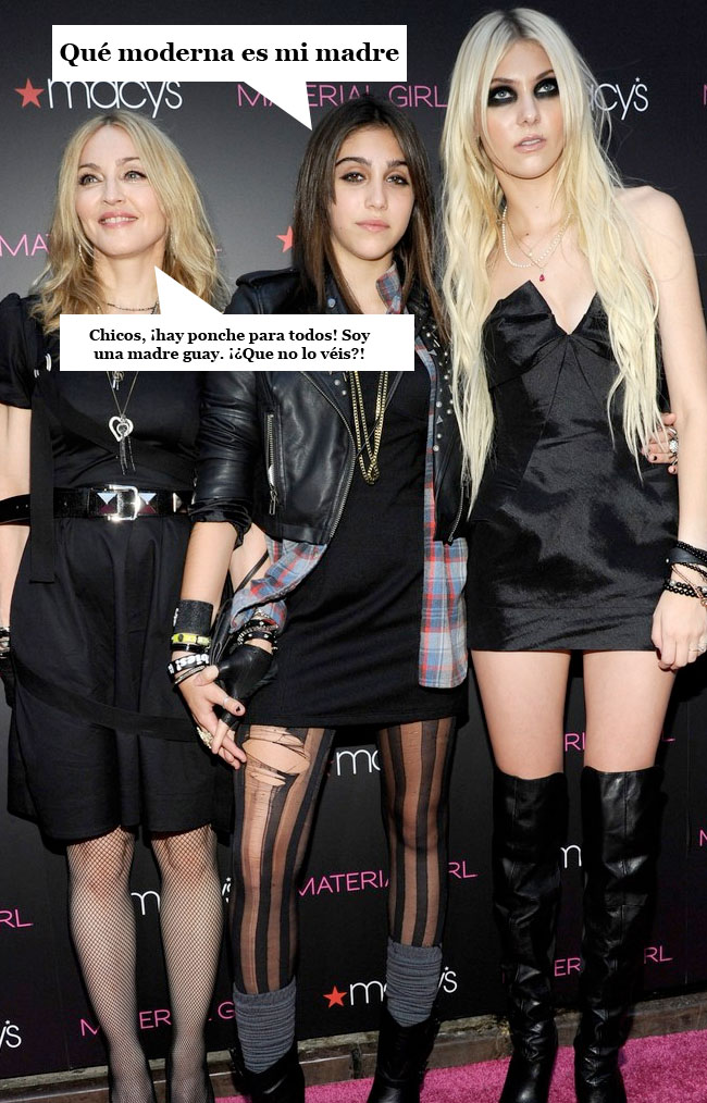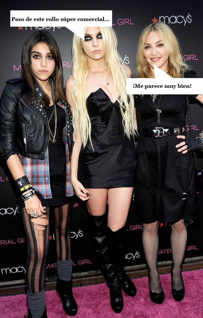 Ya tenemos todas las fotos del evento para Macy's de Madonna con Lourdes María y Taylor Momsen. Básicamente, la estampa puede interpretarse de dos formas. La madre con su hijita y la amiga de ésta o las tres amiguitas juntas que acaban de salir del instituto, porque Madonna, según en qué fotos parece una teen o una estrella del pop de 52 años.
