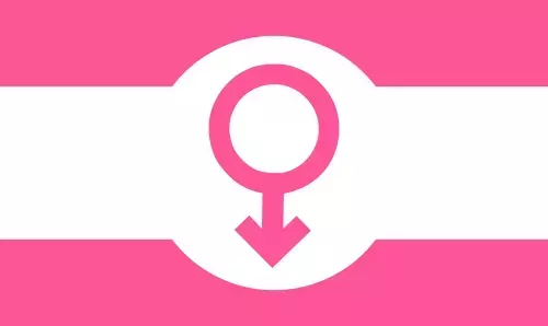 Una variante menos popular de la bandera femboy presenta un símbolo de Marte sobre un fondo rosa y blanco. Sirve para el mismo propósito que la bandera a rayas más reconocible, pero cambia el centro azul por el símbolo de Marte, que tradicionalmente se utiliza para representar la masculinidad.