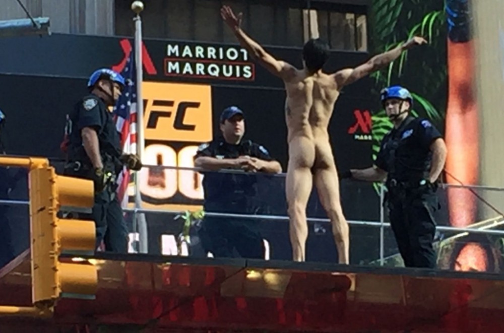 Un modelo desnudo en Times Square pierde la cabeza y moviliza a la policía