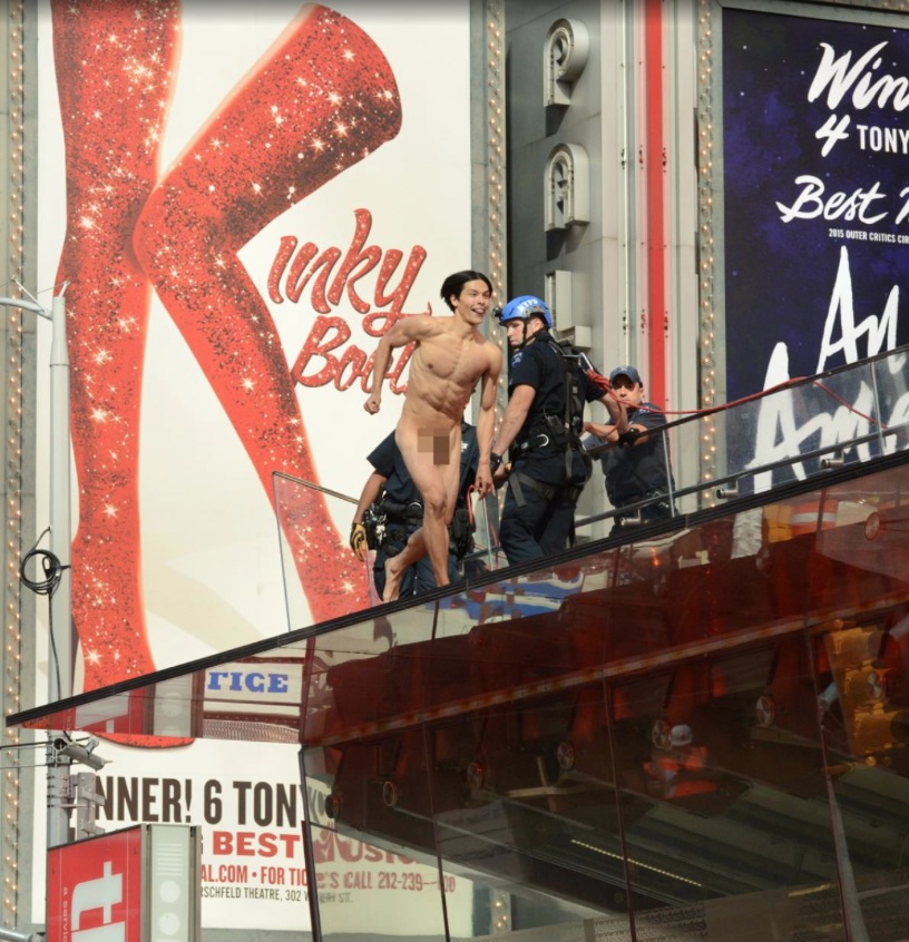 Un modelo desnudo en Times Square pierde la cabeza y moviliza a la policía