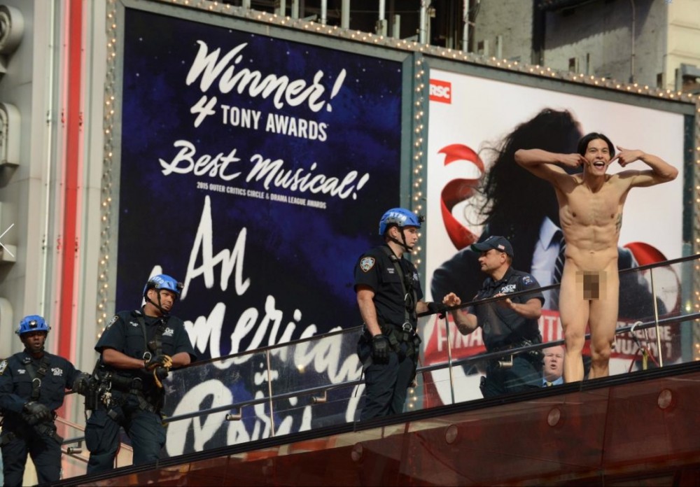 Un modelo desnudo en Times Square pierde la cabeza y moviliza a la policía