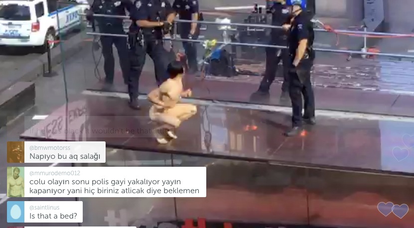 Un modelo desnudo en Times Square pierde la cabeza y moviliza a la policía