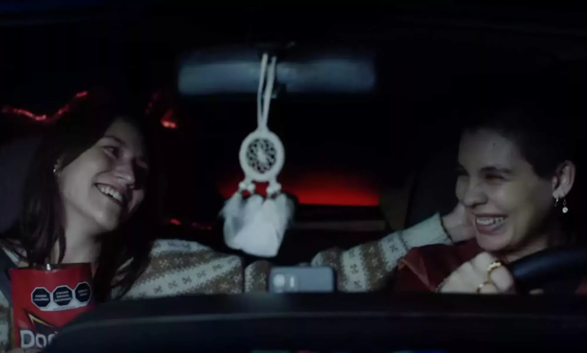 El anuncio se abre con un plano de dos mujeres cogidas de la mano, antes de que la pasajera se coma un Dorito y le diga a su pareja: "Te quiero mucho", mientras la mira con adoración.