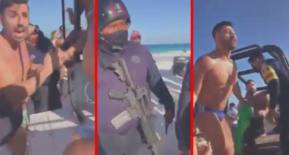 En las redes sociales circulan imágenes inquietantes de una pareja gay detenida por la policía municipal de Tulum (México) por besarse en la playa.