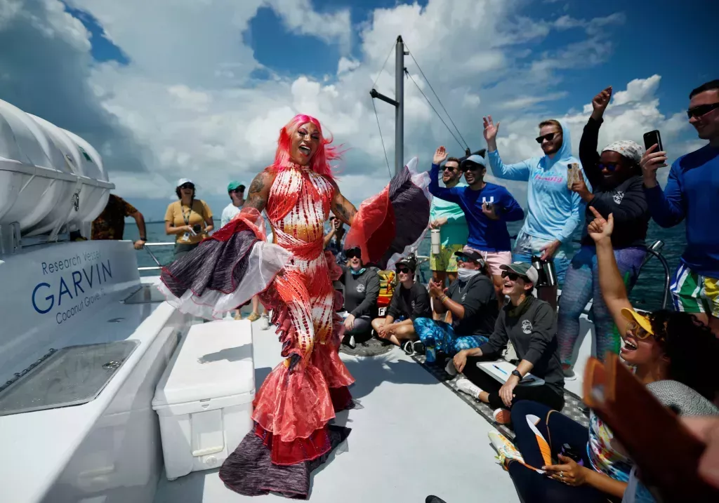 La idea de un evento Drag N Tag surgió hace tres años del grupo educativo marino Field School, que ofrece experiencias de investigación en ciencias marinas y organiza programas educativos para estudiantes de Florida, donde la vida de los homosexuales es cada vez más atacada por los políticos republicanos.