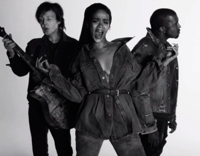 El videoclip es obra de Inez & Vinoodh, que ya se encargaron del vídeo de 'Applause' de Lady Gaga, y nos muestra a Rihanna, Kanye y Paul anunciando vaqueros en blanco y negro, al igual que en la portada del single. Nada de excesos, todo sencillez: menos es más. Los 3 artistas presentarán este nuevo single juntos por primera vez este domingo en los Grammy 2015.