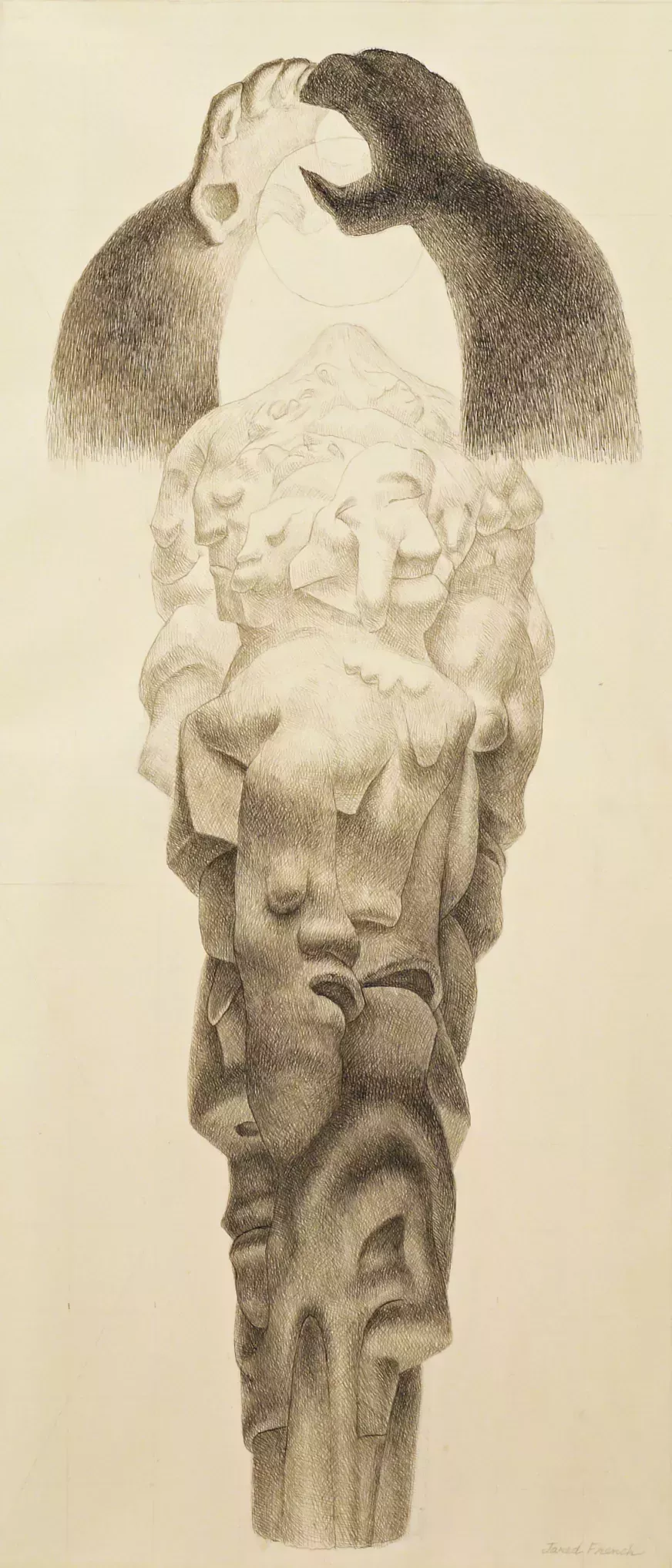 Jared French, "Cliff Dwellers", c. 1960. Tinta y grafito sobre papel.