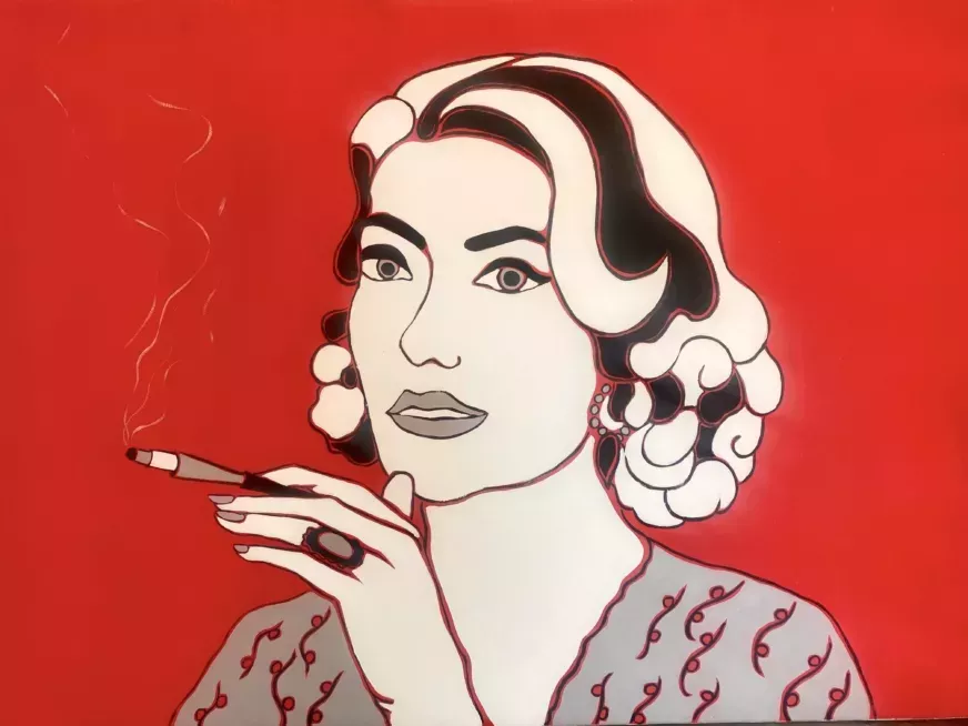 Coco Dolle, "Smokey Lady (Catherine Deneuve)", 2008, De la serie "Damas del crimen". Óleo y acrílico sobre lienzo.