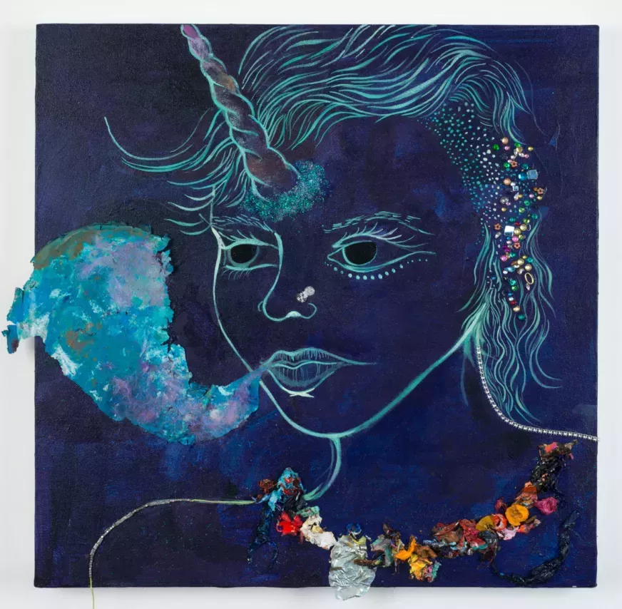 Chitra Ganesh, "Retrato de un artista como unicornio", 2015. Acrílico, pedrería y lentejuelas sobre lienzo.