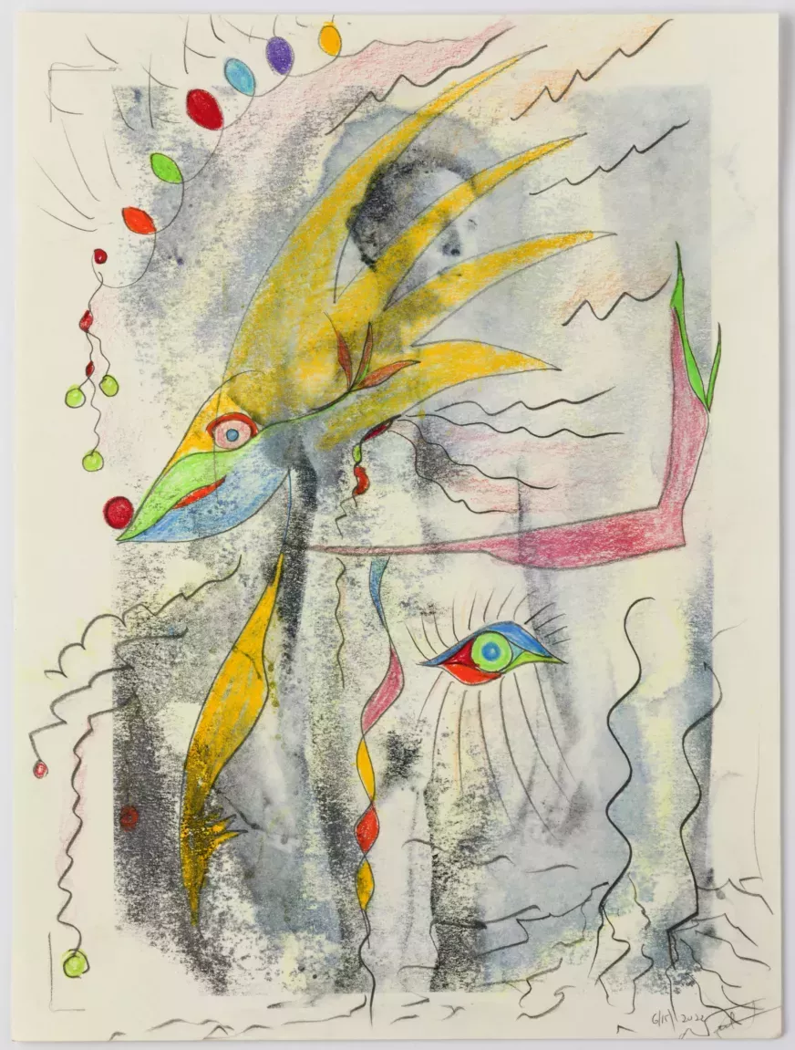 Chuck Nitzberg, "Retrato de Kim David Smith", 2017. Técnica mixta sobre papel.