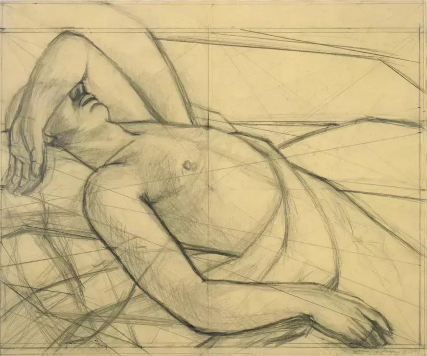 George Tooker, Estudio para "Sleep", 1964. Grafito sobre papel.