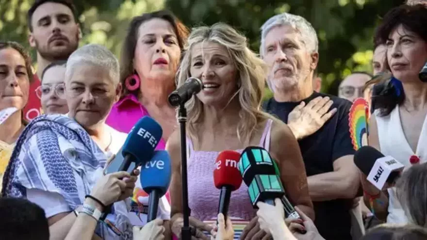 Yolanda Díaz, en su intervención durante la manifestación del Orgullo en Madrid, ha reafirmado su compromiso con los derechos de las personas LGTBI, destacando la necesidad de un pacto de estado que aborde estos derechos en el Congreso. Ha criticado las políticas de partidos como el PP y Vox, que considera perjudiciales para el colectivo, y ha agradecido el trabajo de sindicatos y asociaciones en la defensa de estos derechos. Díaz concluyó llamando a defender la democracia y los derechos LGTBI, que están siendo amenazados en diversas partes del mundo.