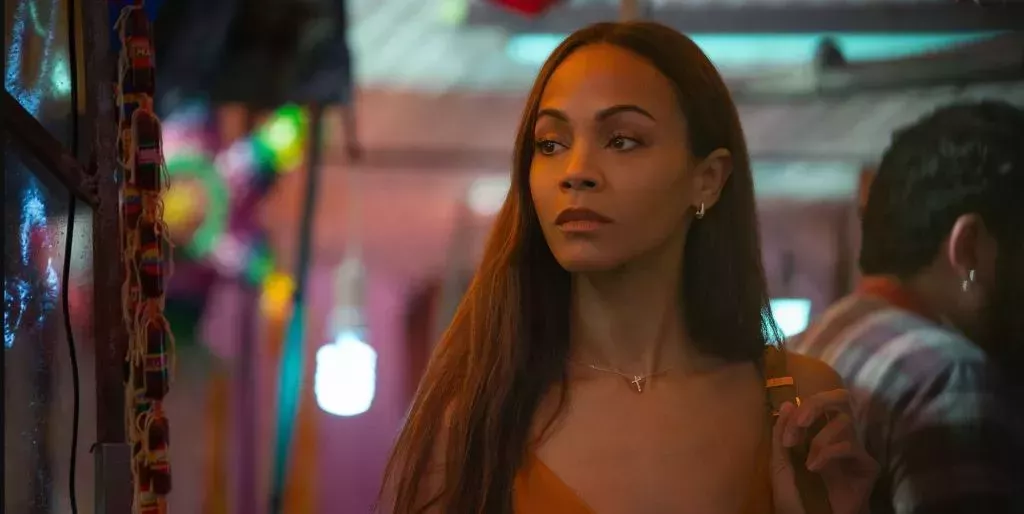 En el thriller musical criminal en español, la actriz de Avatar, Saldaña, interpreta a Rita, una abogada tenaz que es reclutada para ayudar a la titular exjefa del cartel mexicano (Gascón) a falsificar su propia muerte.
